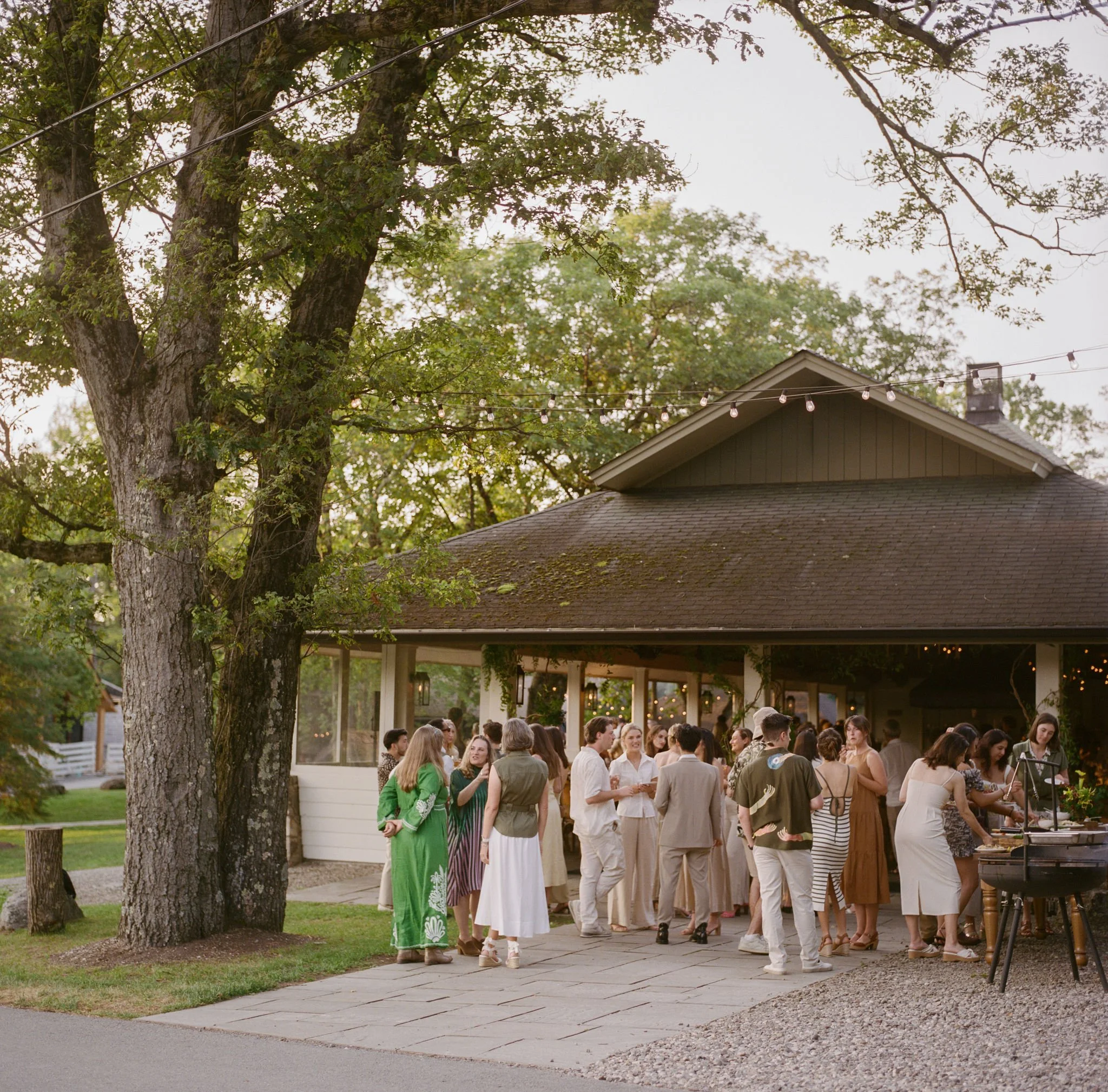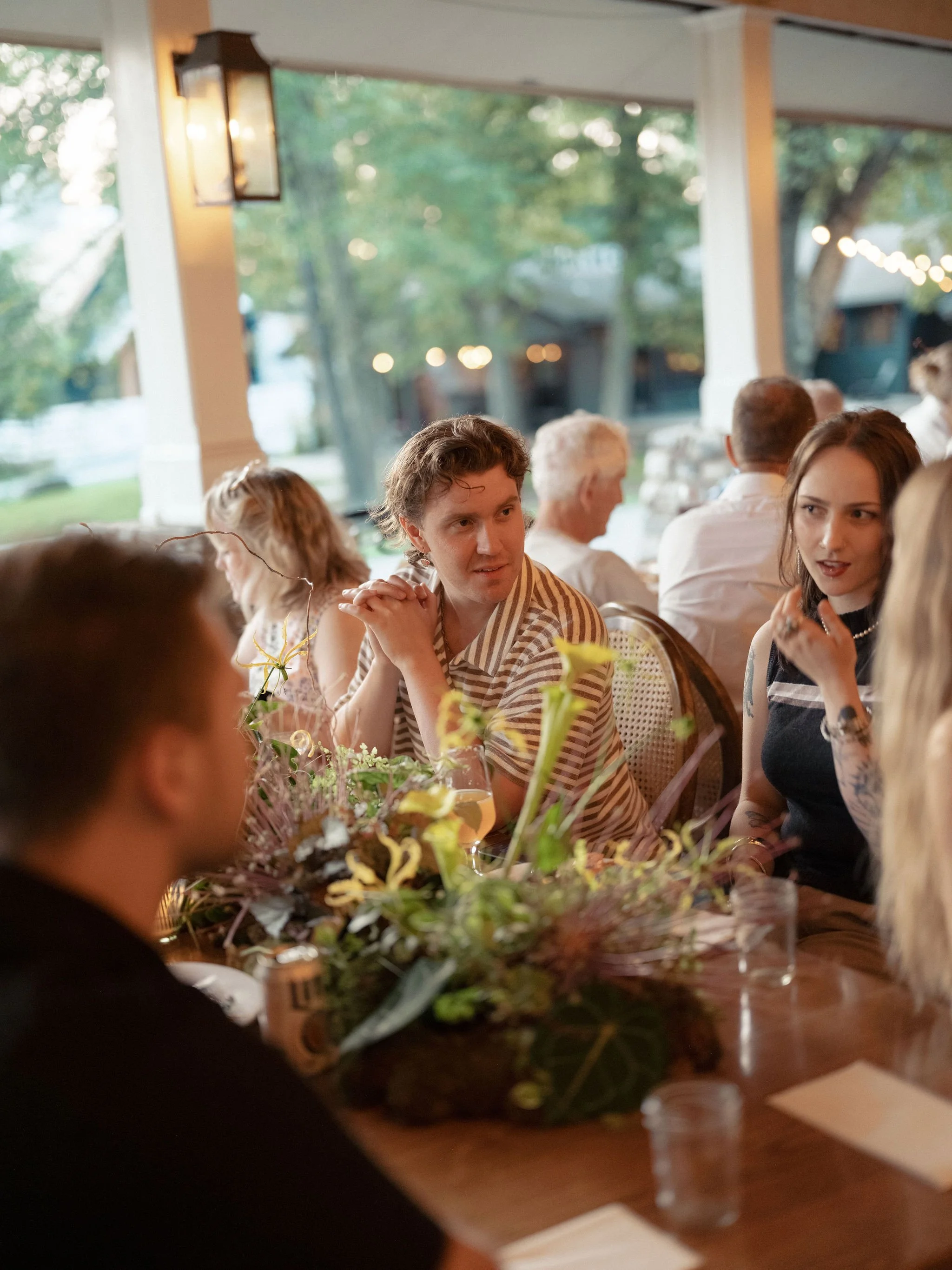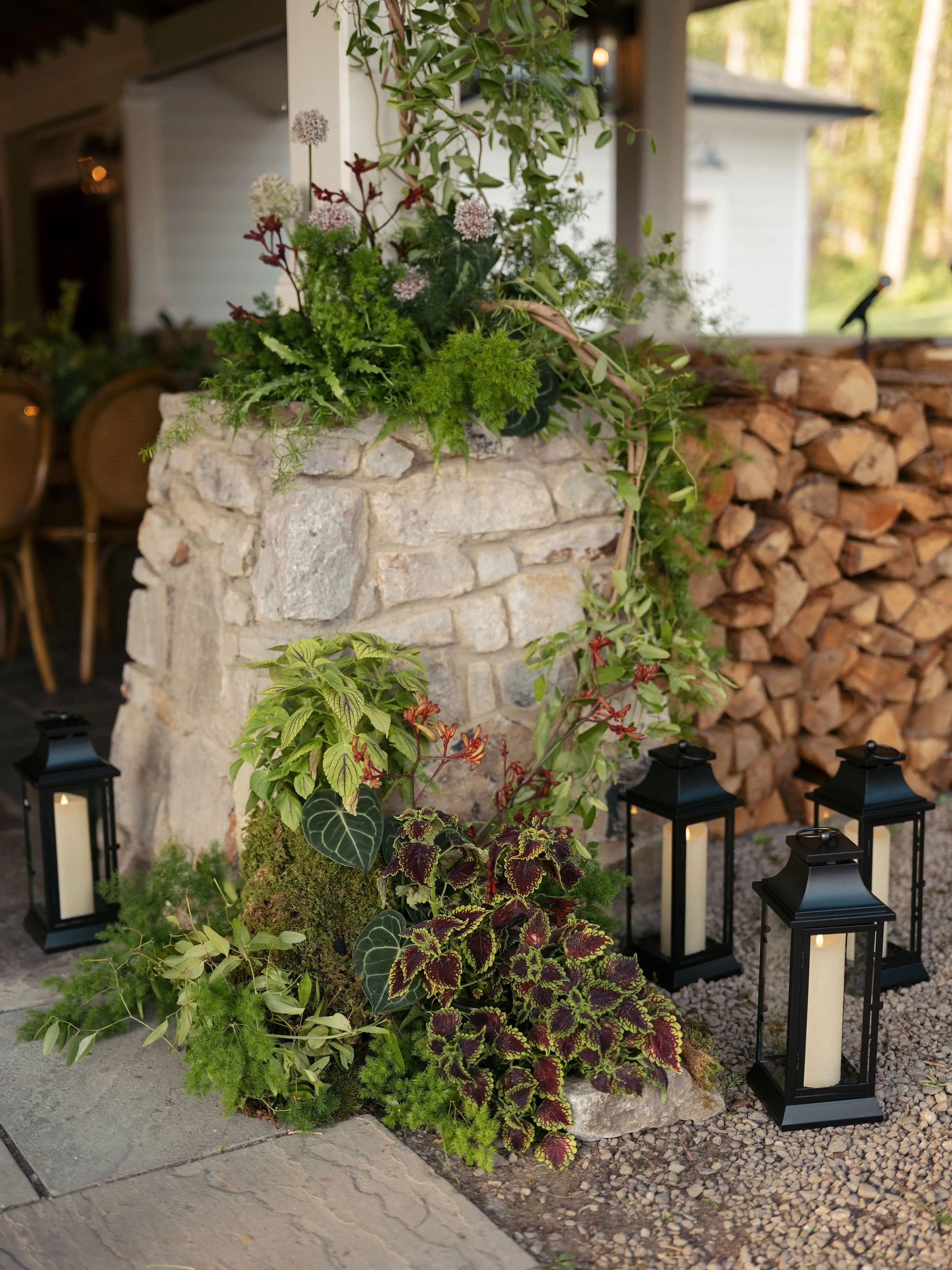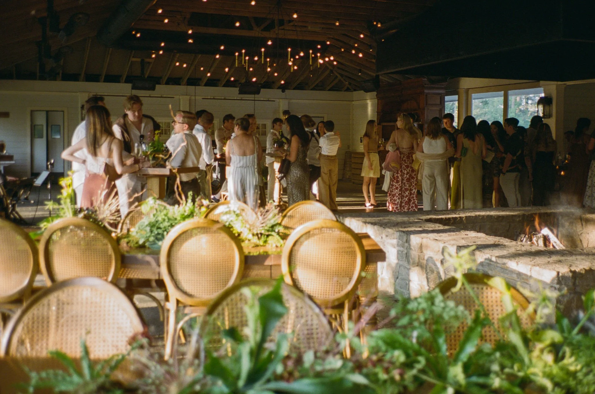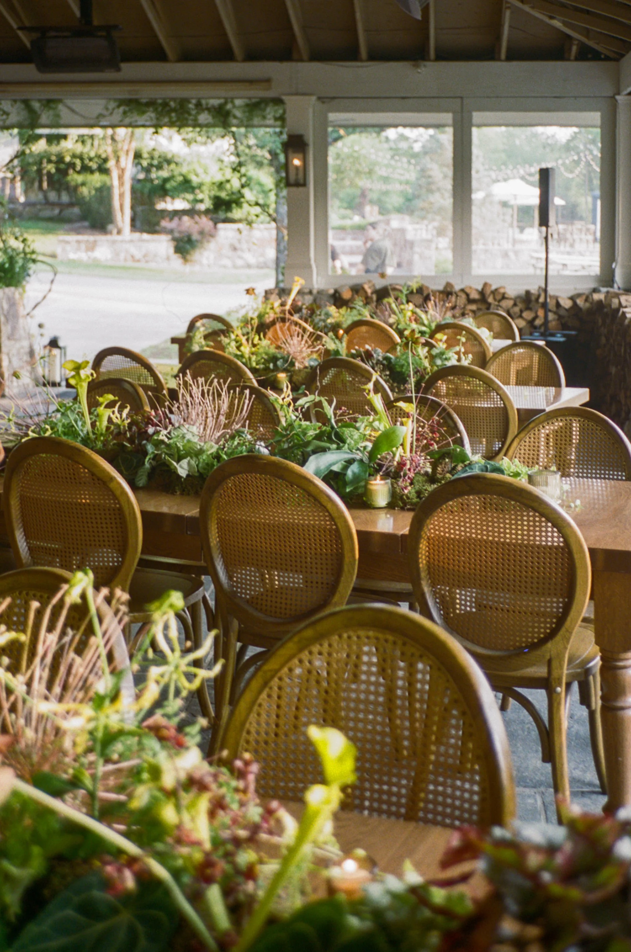 Tatum & Farouk’s welcome party fell on the Fourth of July, and they went all-in on the elevated camp vibe that is so quintessentially Cedar Lakes Estate. The design prompt we received from Nicole at Wander Event Design was — “90s Ralph Lauren meets safari, so lots of khaki, but in the chicest way you can imagine.” We talked about creating a jungle-like atmosphere without tropicals, the design inspired by the groom’s New Zealand roots, where temperate rainforests host plants like ferns and soft moss.