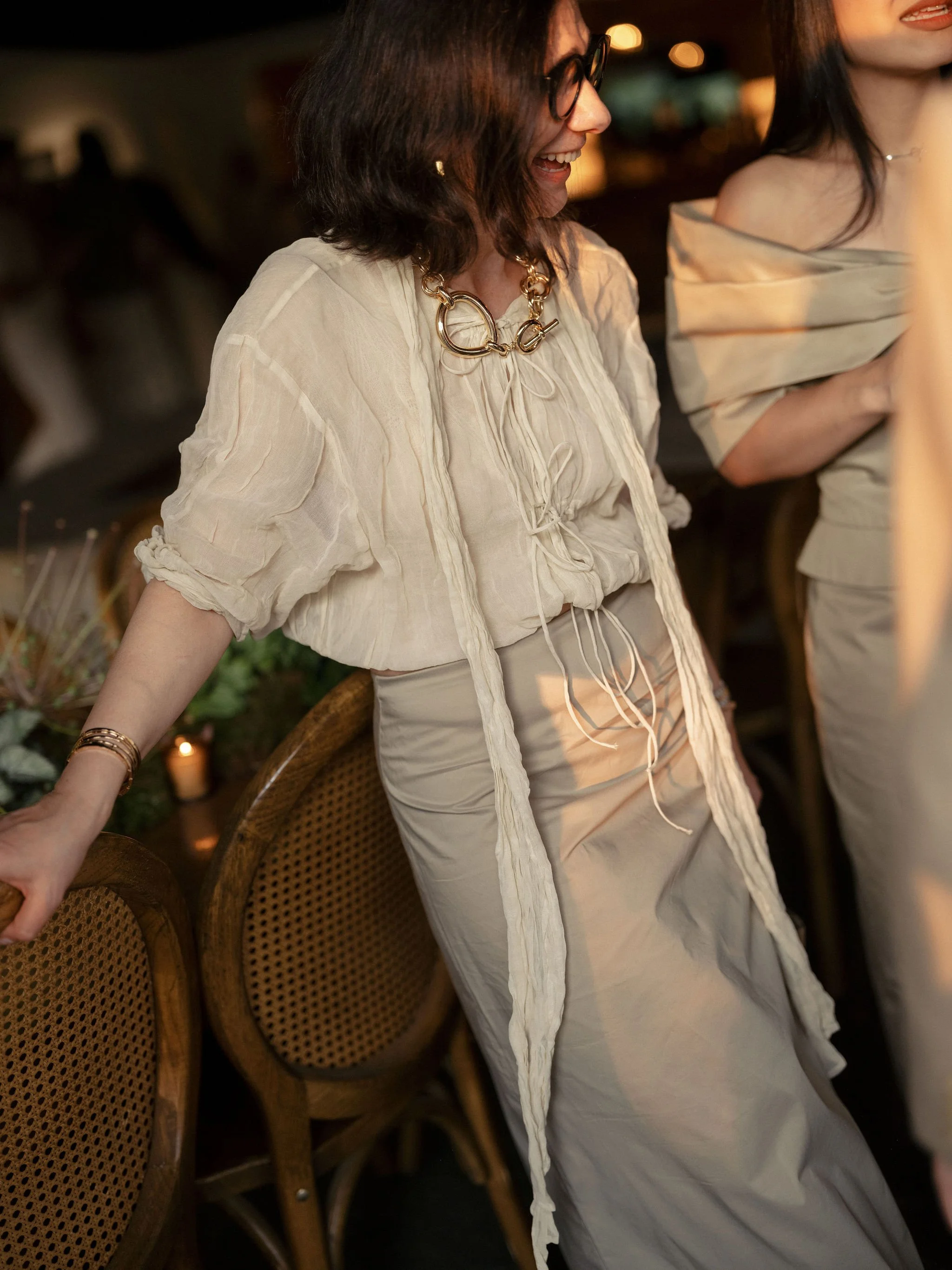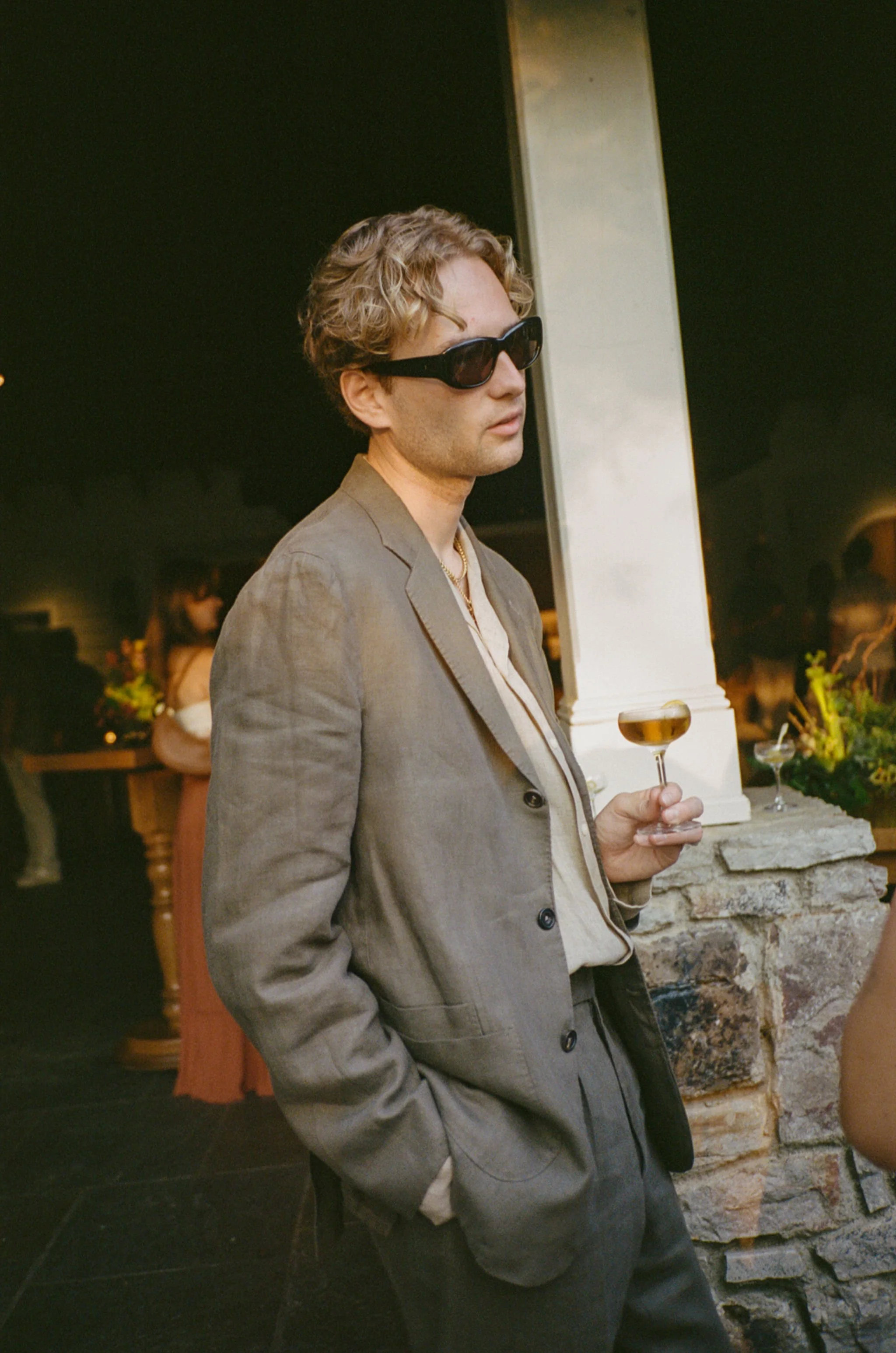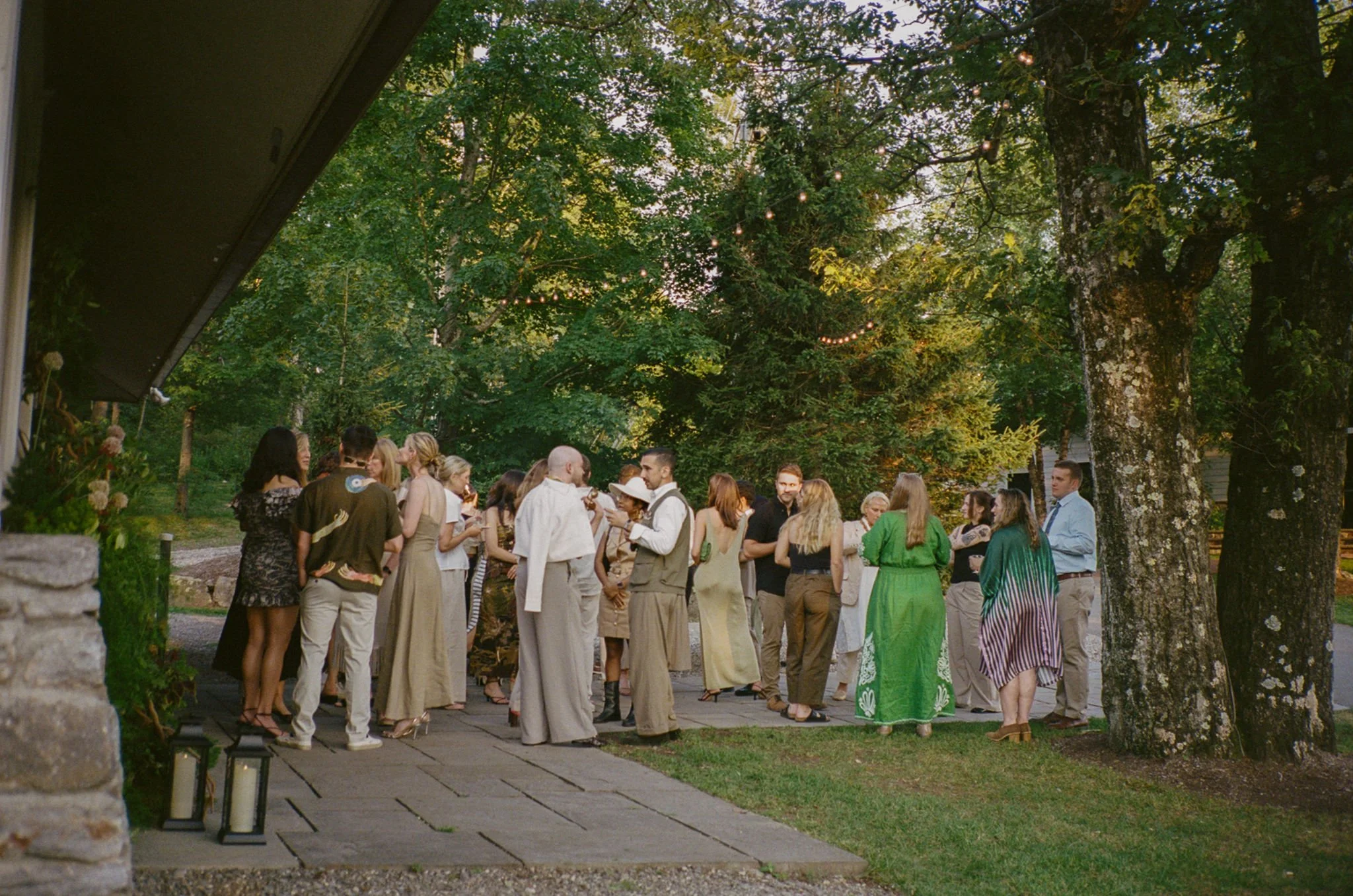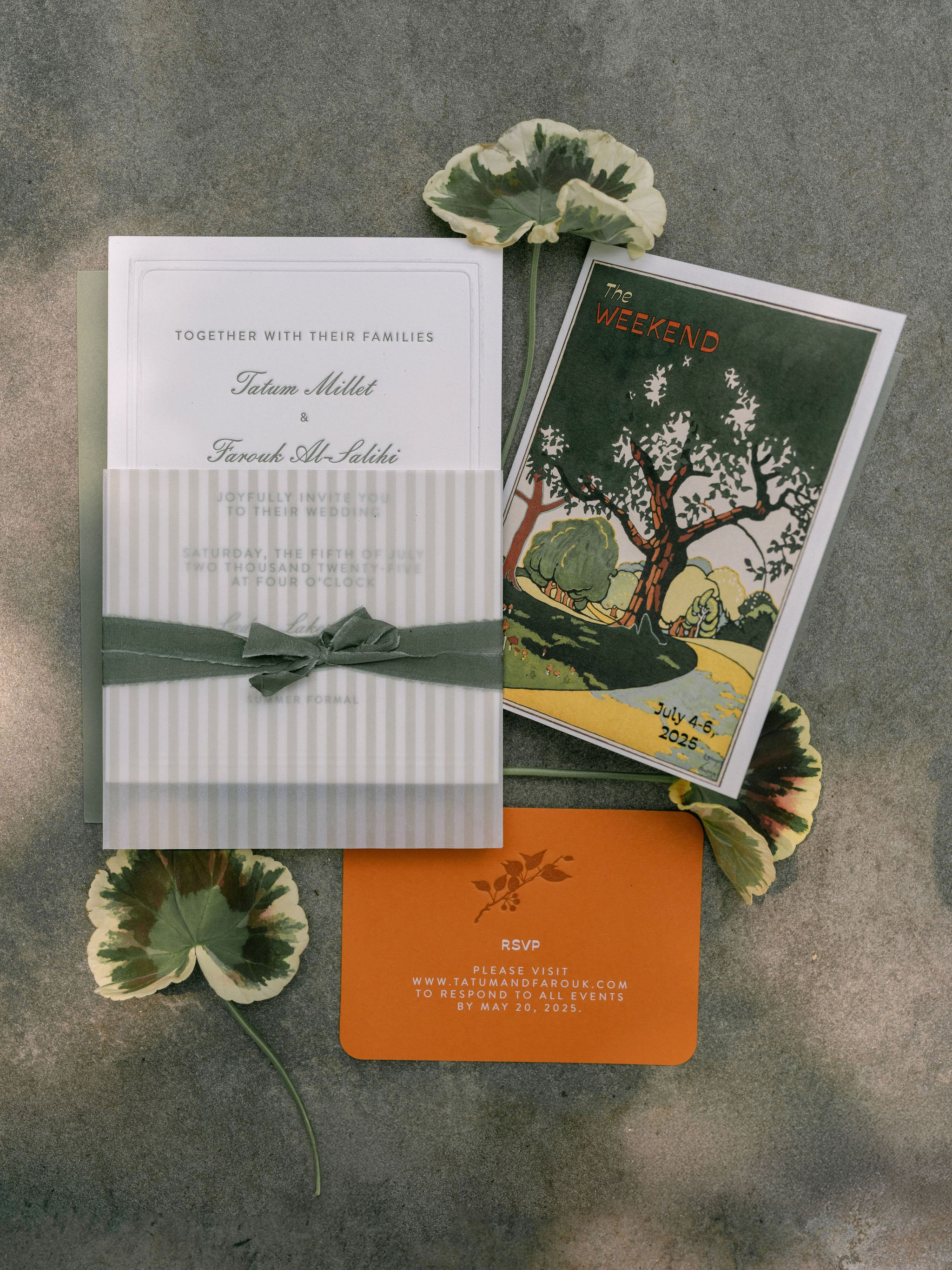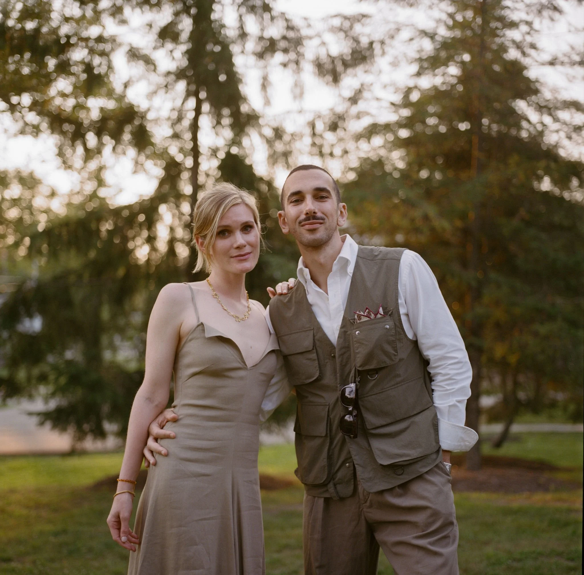 Tatum & Farouk’s welcome party fell on the Fourth of July, and they went all-in on the elevated camp vibe that is so quintessentially Cedar Lakes Estate. The design prompt we received from Nicole at Wander Event Design was — “90s Ralph Lauren meets safari, so lots of khaki, but in the chicest way you can imagine.” We talked about creating a jungle-like atmosphere without tropicals, the design inspired by the groom’s New Zealand roots, where temperate rainforests host plants like ferns and soft moss.