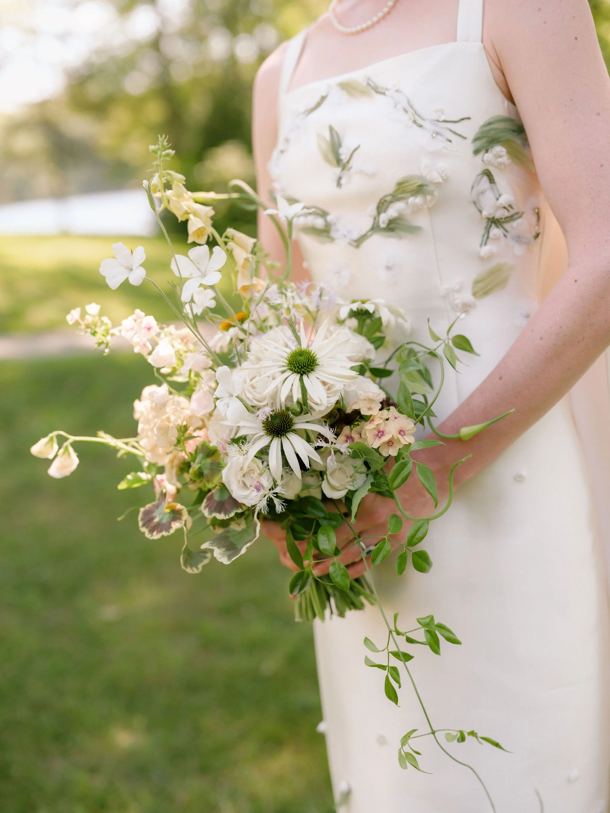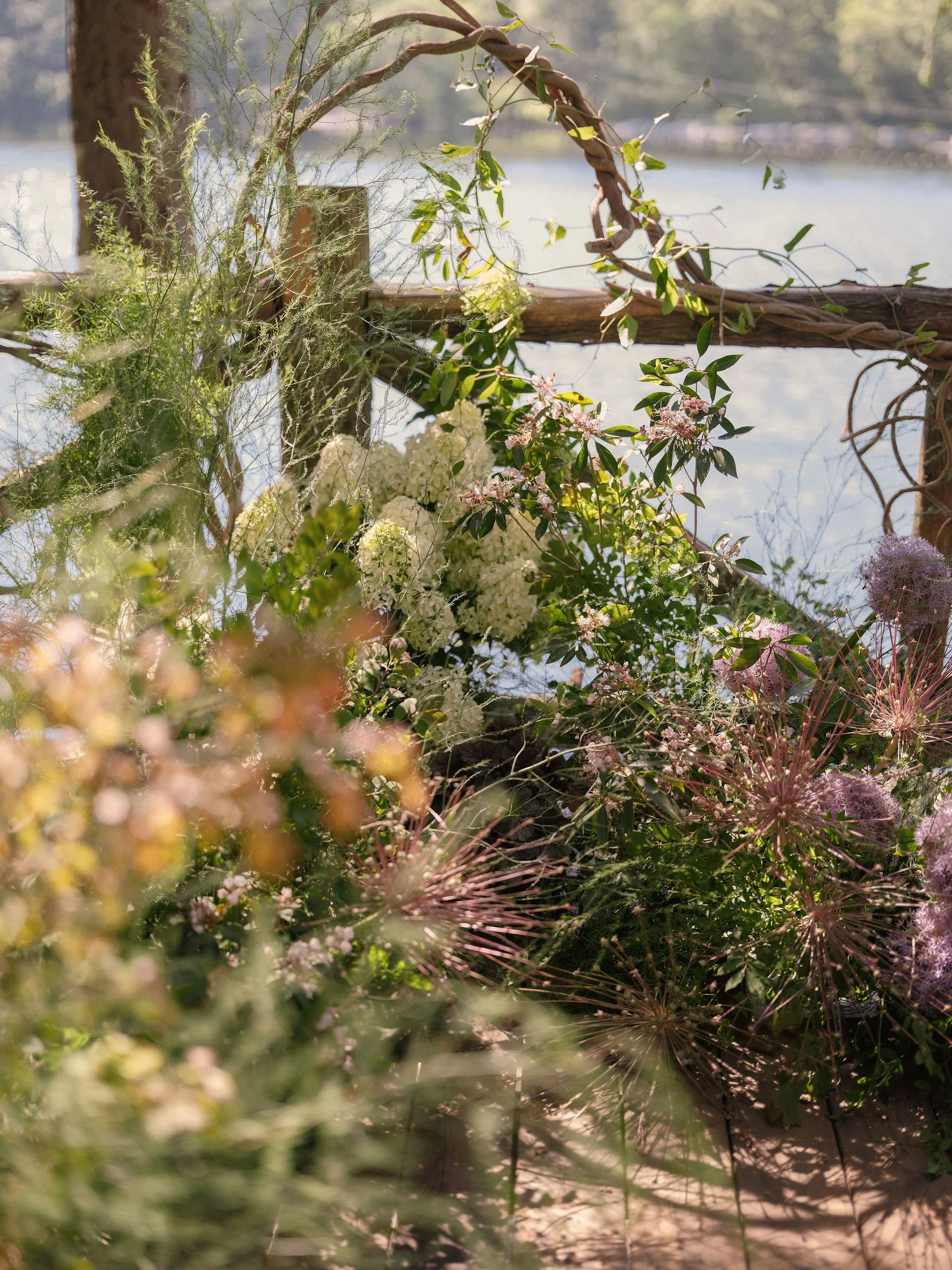Wedding day was an opportunity to play within a classic white-and-green, pastel-tinged palette without creating work that looked like other classic white-and-green, pastel-tinged weddings. We spent the week actively sourcing from our local nurseries, farms, and wholesale flower market to find the most ideal combination of textures & colors. So much thought went into this process, including many ongoing conversations with our farmer friends, who watched their fields under the intensifying summer heat, giving us updates along the way. My favorite aspect of this one is that we found every flower that reminded us of fireworks and brought them all together to create something hyper-local, which rooted their wedding day in time & place. This, to us, is a quintessential July wedding in New York state.