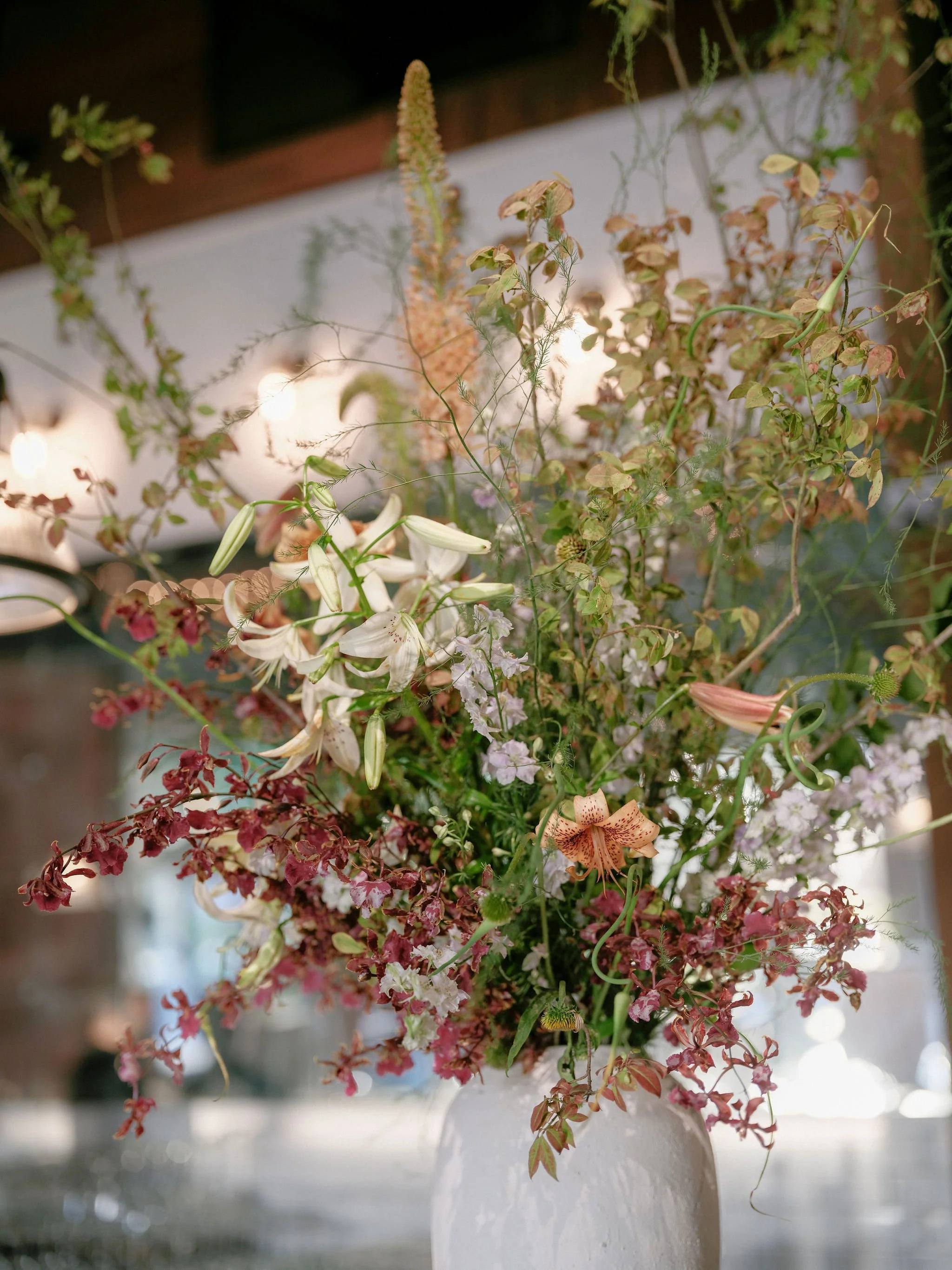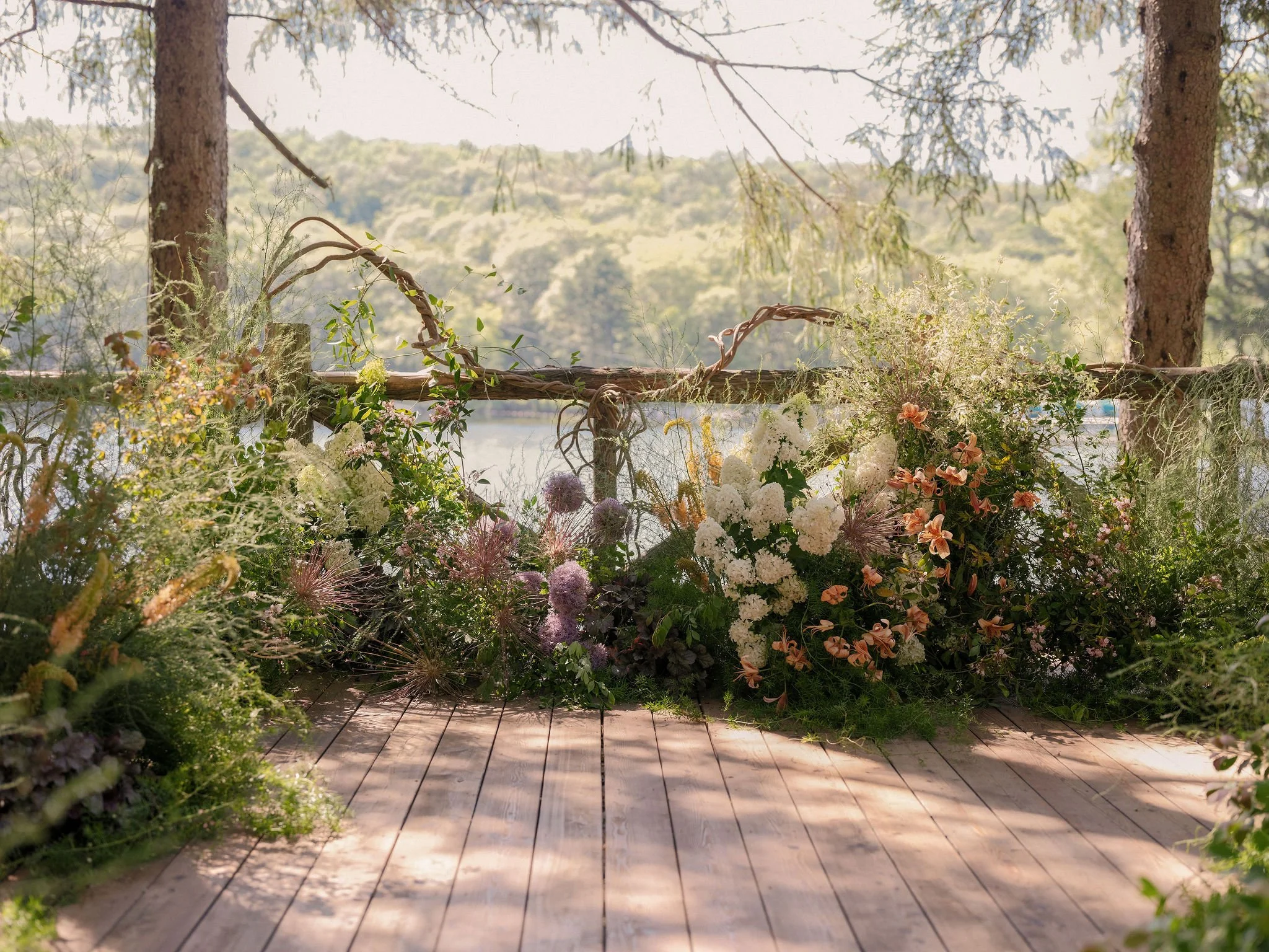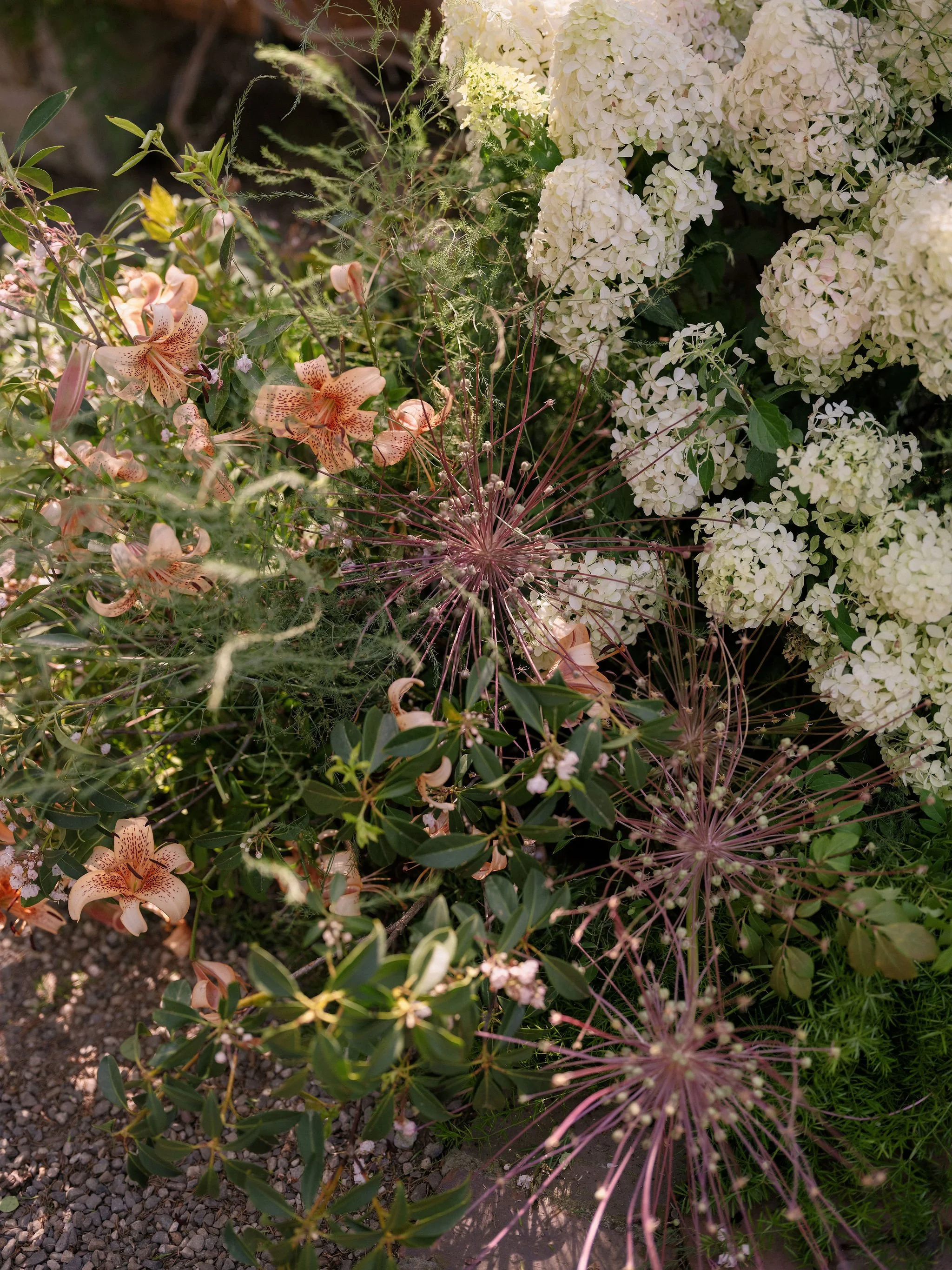 midsummer daydream — piles of hydrangea, asparagus fern, tiger lillies, alliums