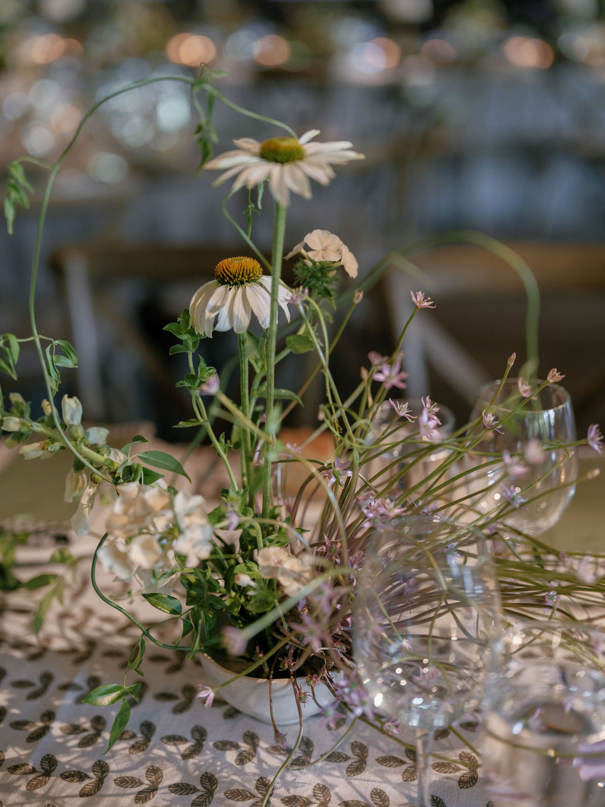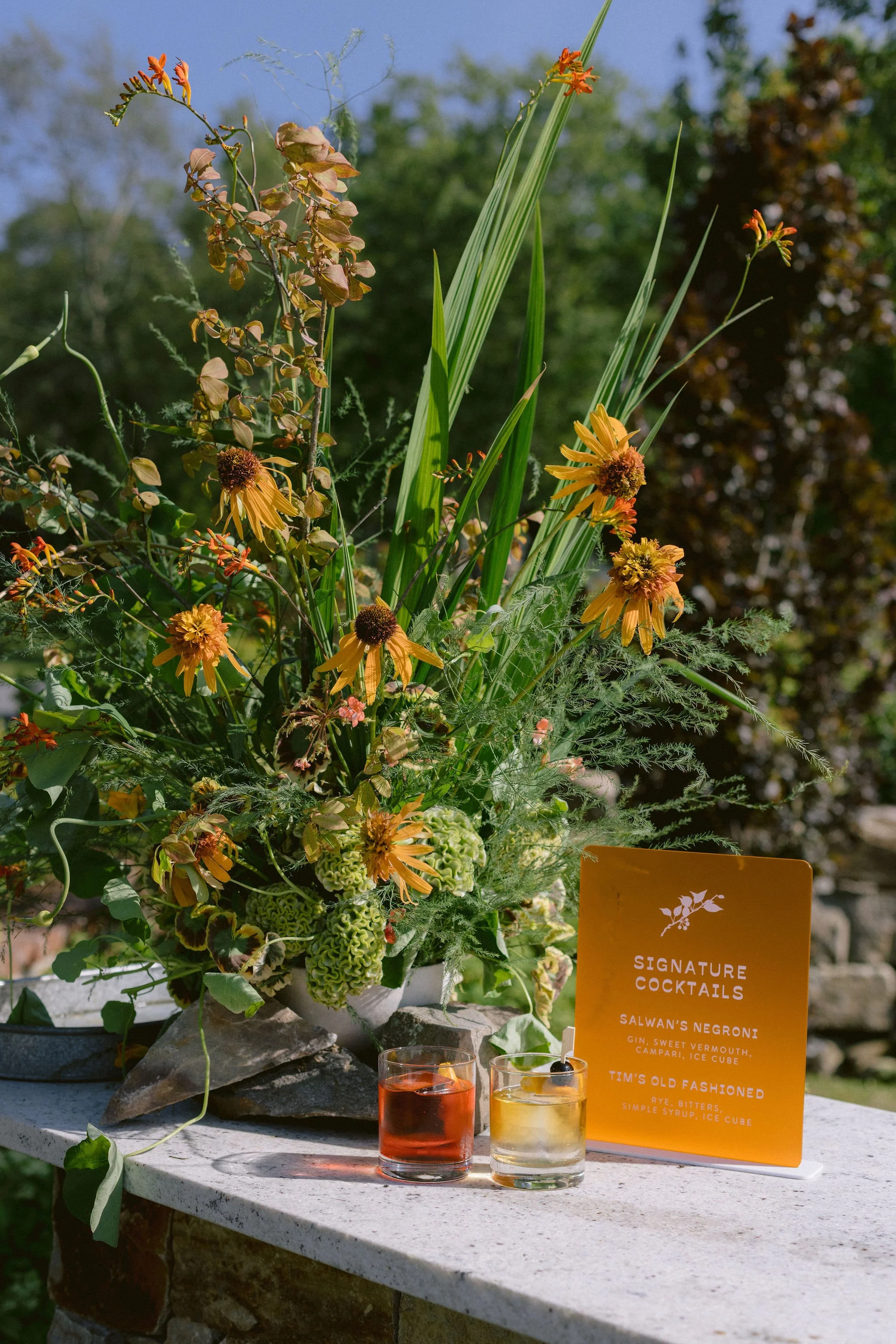 orange-tinted cocktail hour feat. local echinacea, coxcomb celosia, nasturtiums, and geraniums